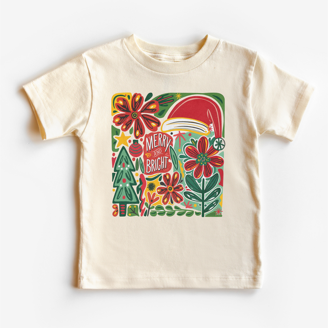 Merry And Bright Christmas Boho T-Shirt - Kids Christmas Tee