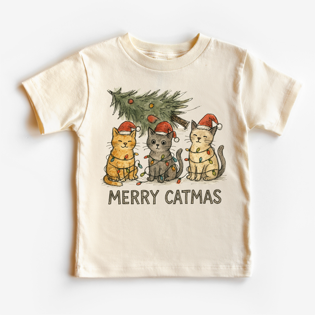 Merry Catmas Kitty Cat Christmas Tree T-Shirt - Kids Christmas Tee