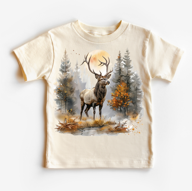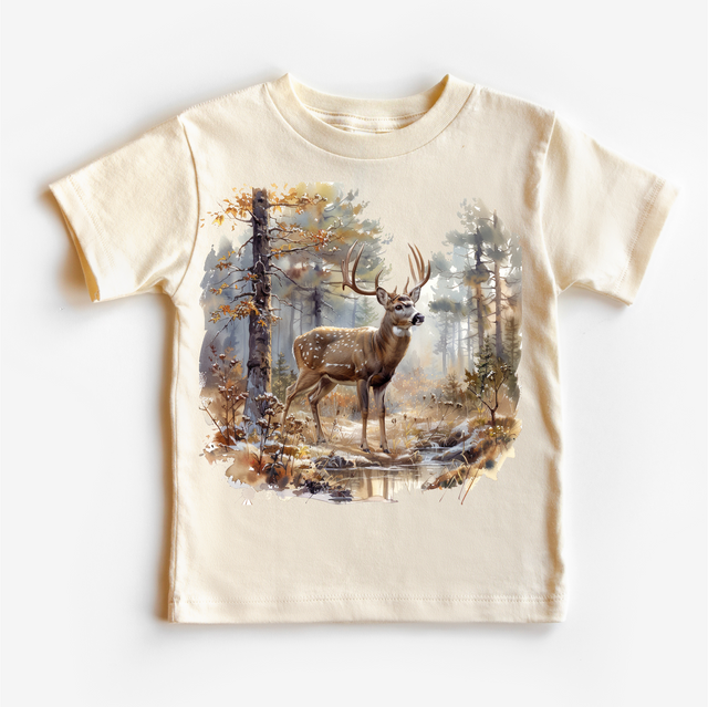 Retro Deer Watercolor Nature Scene Buck Shirt - Kids Tee
