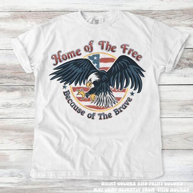 Retro Home Of The Free Because Of The Brave Tee - Printed On Comfort Colors