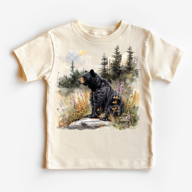 Retro Grizzly Bear Watercolor Nature Scene Shirt - Kids Tee