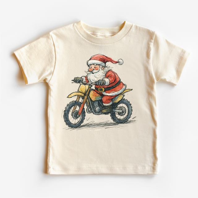 Santa Riding A Motocross Dirt Bike T-Shirt - Kids Christmas Tee
