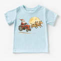 Bring festive farm fun to your child's wardrobe with the Santa Tractor and Cows Farm T-Shirt. This kids' country Christmas tee combines cozy comfort with a charming design featuring Santa on a tractor surrounded by cows, perfect for little farm lovers. Made from soft, breathable fabric, it ensures all-day wearability during holiday activities or family gatherings. Celebrate the season with a unique holiday shirt that blends rustic charm and Christmas cheer, making it a great gift for kids who adore country life and festive fun.