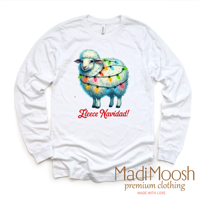 Fleece Navidad Christmas Tee - Long Sleeve White Shirt