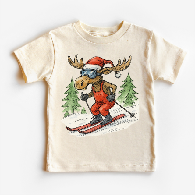 Vintage Moose Snow Skiing Christmas T-Shirt - Christmas Tee