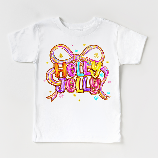 Holly Jolly Ribbon Christmas T-Shirt - Girls Christmas Tee
