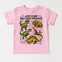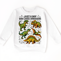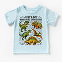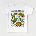 Just A Boy Who Loves Dinosaurs Shirt - Dinosaur Tee Perfect for young dino enthusiasts, this comfortable dinosaur tee celebrates a passion for prehistoric creatures. Featuring a bold, eye-catching design, this shirt is ideal for everyday wear, playdates, or themed events. Made from quality fabric that withstands active play and repeated washing, it's a wardrobe staple for any dinosaur-loving kid. Available in multiple sizes to fit growing children. Whether he's into T-Rex facts or Triceratops trivia, this dinosaur shirt lets him express his interests with style and confidence.