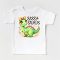 Sassy Saurus Rex Dinosaur Tee for Girls Let your little one roar with confidence in this playful dinosaur shirt designed for modern girls who love bold style. Featuring a charming sassy T-Rex graphic, this tee combines comfort with personality, making it perfect for everyday wear, playdates, or themed adventures. Crafted from soft, breathable fabric, it's built to withstand active play while keeping her cool and comfortable. The eye-catching dinosaur design appeals to kids who embrace their wild side and unique sense of humor. Whether she's a dinosaur enthusiast or just loves fun, expressive clothing, this girls' dinosaur tee delivers style that stands out. A versatile wardrobe essential that pairs easily with jeans, shorts, or leggings for any occasion.