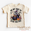 Upgrade your Halloween wardrobe with the On My Way To Stir The Pot Witch Shirt. Made with premium quality fabric, this tee is the perfect addition to any witch costume. Embrace your inner witch and stir up some fun this Halloween with this stylish and comfortable shirt.