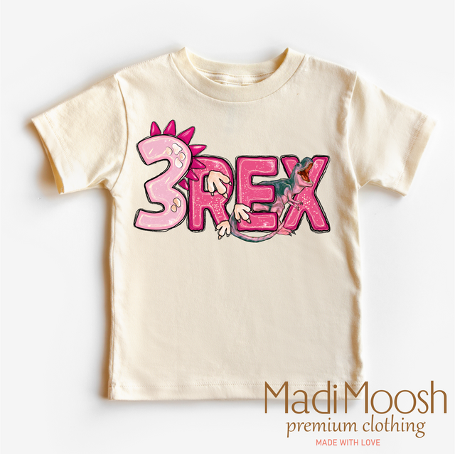 Three Rex Birthday Shirt - Girls Dinosaur Birthday