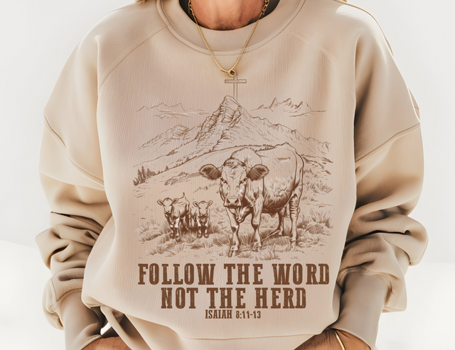 Follow The Word Not The Herd Crew Neck Crewneck Sweatshirt - Sand Color