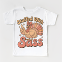 Get ready for Thanksgiving with the Stuffed With Sass Thanksgiving T-Shirt. Featuring a playful turkey design and cheeky message, this tee adds fun to your holiday outfit. Made from soft, comfortable fabric, it’s perfect for all-day wear at family dinners or festive gatherings. Show off your holiday spirit with a stylish and witty shirt that combines comfort and sass for the perfect seasonal look.