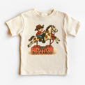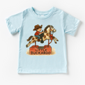 Outfit your young rodeo fan with the Little Buckaroo Cowboy Western T-Shirt, designed to capture the spirit of the Wild West. Made from soft, durable fabric, this tee offers all-day comfort and a rugged look perfect for playtime or rodeo events. Featuring classic cowboy-themed graphics, it pairs easily with jeans or shorts for a versatile and stylish addition to any little buckaroo’s wardrobe. Embrace western charm and functionality with this must-have kids' tee.