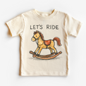 The Let’s Ride Western Kids T-Shirt features a fun rocking horse design perfect for little cowboys and cowgirls. Made from soft, durable fabric, this tee ensures all-day comfort for active kids. Its playful western theme sparks imagination and adventure, making it a great choice for casual wear or themed events. Add a touch of western charm to your child’s wardrobe with this stylish and comfortable kids’ t-shirt.