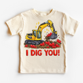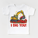 I Dig You Excavator Valentine's Day Shirt for boys brings construction-themed fun to Valentine's celebrations. This playful tee features a charming excavator design with a sweet "I Dig You" message, perfect for little builders who love heavy machinery. Made from soft, comfortable fabric, it's ideal for Valentine's Day parties, classroom exchanges, or everyday wear. The vibrant graphics appeal to construction-loving kids while the durable material withstands active play and repeated washing. A unique gift choice that combines holiday spirit with childhood interests, this boys' construction Valentine shirt stands out from traditional options and makes sharing valentines more memorable.