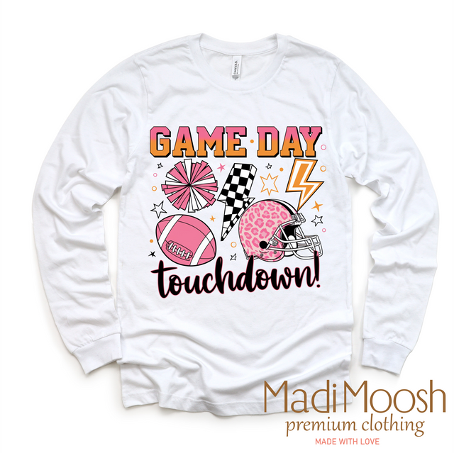 Game Day Football Touchdown Tee - Long Sleeve White Shirt