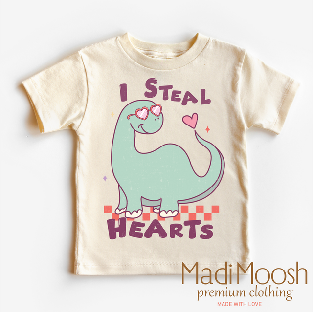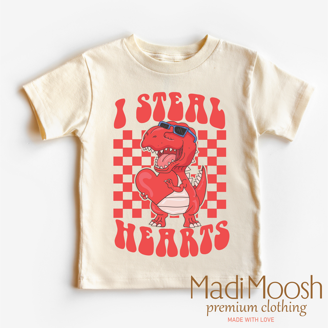 I Steal Hearts Dinosaur Valentine's Day Shirt - Valentine Tee