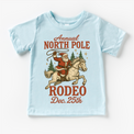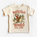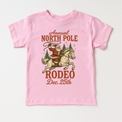 Saddle up for the holidays with this unique North Pole Rodeo Cowboy Christmas t-shirt for kids. This playful tee blends western charm with festive spirit, featuring a fun rodeo-themed design that stands out from traditional holiday wear. Perfect for kids who love cowboys, adventure, and Christmas celebrations, it's an ideal choice for holiday gatherings, themed parties, and seasonal fun. Made with quality, breathable fabric for all-day comfort, this kids' Christmas tee makes a memorable gift that combines two beloved themes into one eye-catching design.
