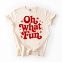 Oh What Fun Christmas Unisex T-Shirt Embrace the magic of the season with this delightful Oh What Fun unisex t-shirt that brings holiday spirit to life. Printed on premium Comfort Colors fabric, this tee combines softness with durability for a garment you'll reach for again and again. The playful design captures the excitement and wonder of Christmas, making it an ideal choice for holiday parties, family gatherings, and festive celebrations. High-quality printing ensures the design stays vibrant and bold through repeated wear and washing. Available in multiple sizes, this unisex cut provides a comfortable fit for everyone. Perfect as a standalone piece or layered under jackets and sweaters, this versatile cotton blend shirt is a must-have for anyone looking to express their holiday enthusiasm with style and comfort.